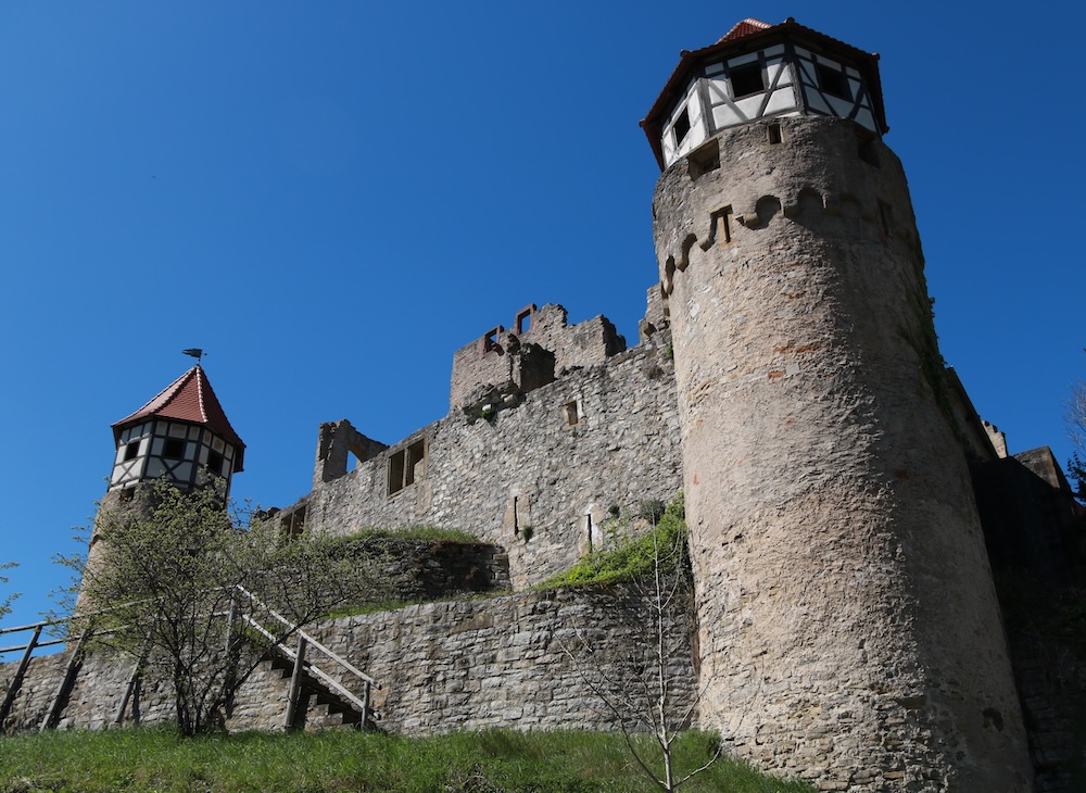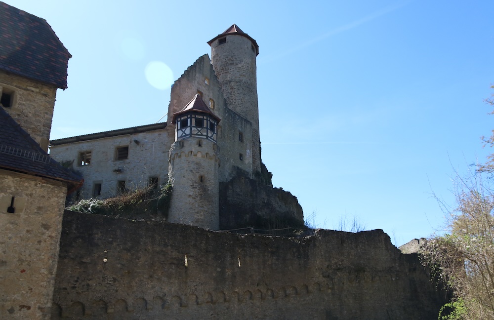 As the weather was finally good and sunny at the beginning of this week, we decided to go out on a little trip and take some nice photos. We visited Burg Hornberg. A great castle ruin located not far away from the place we live. The famous Knight, Götz of Berlichingen, lived there a long time ago but now of course there are only ruins left.